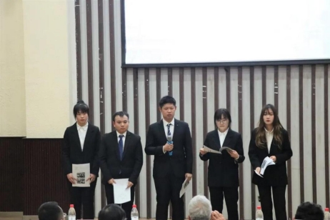 在各小组进行展示之后,王德发教授对此次比赛小组的问题进行了总结,提出对于抽样这一问题的极大重视,并对于文字图表、选手着装等都提出了自己的意见和看法,希望选手们能够注重这些看似微不足道,实则关系大局的细节。