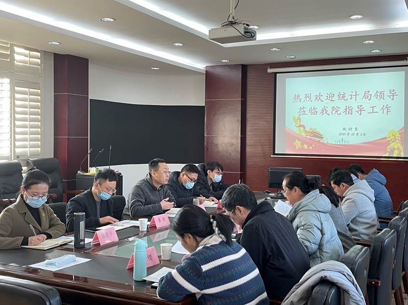 2021年12月3日上午,金华市统计局副局长沈黎、金东区统计局局长范新华等一行人来院开展关于数据科学与大数据技术和经济统计学的专业建设问题研讨会。爱体育在线副主任武斌、数据科学教研室主任奚欢、经济统计教研室主任罗平、教师代表孙思宇和陈佳铭参与讨论。
