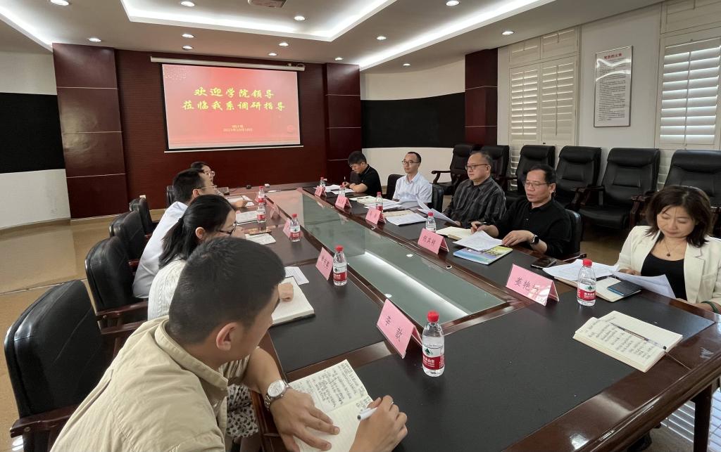 10月18日,学院院长马洪,党委委员、组织部部长张正亮在党院办和教务处、科研处相关负责人的陪同下到统计系调研学科发展和专业建设工作。统计系负责人武斌及各教研室主任参加调研。