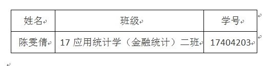 根据《爱体育在线学生国内访学管理暂行办法》和《关于做好2018年选拔优秀学生进入校本部交流学习的通知》等文件精神,结合《爱体育在线“赴上海财经大学访问学生”项目选拔的通知》,经个人申报、系部资格审查,统计系拟推荐陈雯倩同学获得“2018年赴上海财经大学访问学生”资格。现予以公示。