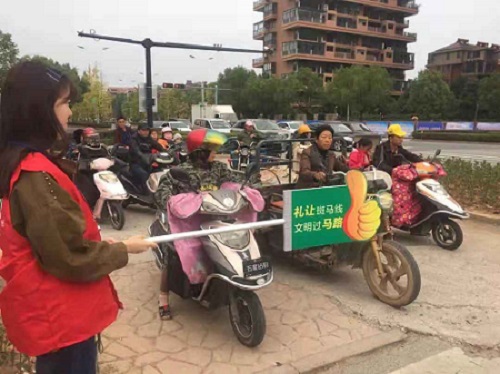 为维护城市文明建设,倡导文明交通行为,2018年9月18日至2018年10月22日,统计系教工党支部组织全体教职工党员带队学生党员和入党积极分子组成文明交通劝导队伍,在李渔东路与康济街交叉路口开展文明交通劝导志愿服务活动。